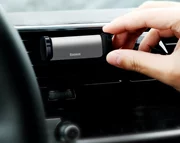 El soporte para automóvil Baseus en la red de ventilación garantiza un soporte para teléfono estable y seguro. Con su ayuda, puede utilizar cómodamente la navegación o escuchar sus canciones favoritas mientras conduce. La capacidad de girar la base 360° le da libertad y su ajuste de ancho de 55 a 84 mm garantiza la compatibilidad con la mayoría de los teléfonos inteligentes.