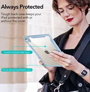 La funda tiene un marco flexible que absorbe los golpes y mochilas rígidas para proteger tu dispositivo de daños sin cubrir completamente el aspecto original de tu iPad.