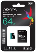 ADATA MicroSDXC 64GB U3 V30S až 95MB/s + adapter(AUSDX64GUI3V30SA2-RA1)