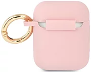 Funda de silicona GUESS. La funda de silicona protege la base de conexión para auriculares inalámbricos Apple AirPods de daños en la superficie y posibles pérdidas. La funda de silicona de alta calidad encaja perfectamente en la funda original de los AirPods y es extremadamente agradable al tacto. El conjunto se complementa con el distintivo logotipo dorado de Guess, que hace que la funda adopte un estilo elegante. En el lateral de la funda hay un práctico anillo dorado que permite fijar la funda, por ejemplo, a un cordón.