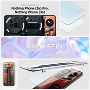 Vidrio templado 9H con marco de instalación, recubrimiento oleofóbico y sensibilidad táctil intacta. Compatible con fundas Spigen para Nothing Phone 3A/3A Pro.