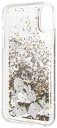 Se distingue por el líquido, que brilla en las partículas doradas claras de purpurina con lentejuelas, que cambian de posición bajo la influencia de un cambio en el ángulo de inclinación.