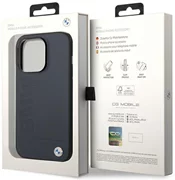La exclusiva funda rígida de la colección BMW Signature está fabricada con una combinación de policarbonato y cuero auténtico, con bordes flexibles de TPU para facilitar su instalación.