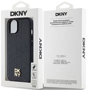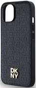 Funda DKNY de piel PU con patrón repetido y logo apilado MagSafe para iPhone 14 negra (DKHMP14SPSHRPSK)