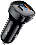 Equípate con el resistente cargador de coche Acefast B4, equipado con un puerto USB-C y un puerto USB-A, que permite cargar rápidamente dos dispositivos de forma simultánea. Uno de los puntos fuertes del producto es su pantalla digital, que proporciona información en tiempo real sobre el voltaje de carga. La potencia del cargador alcanza los 66 vatios, además, el dispositivo cuenta con una serie de funciones de seguridad y garantiza una regeneración segura de la energía.